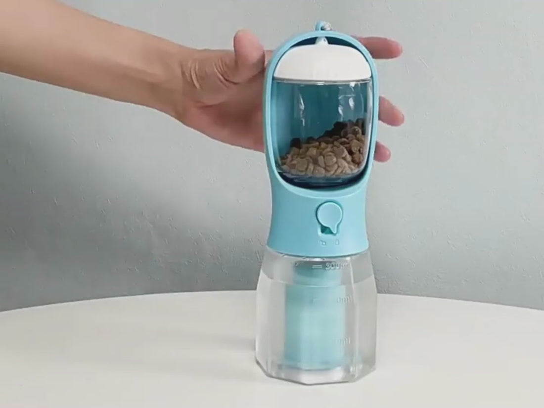 1x 3-in-1 Dog Travel Bottle Water + Food + Waste Bag compartments